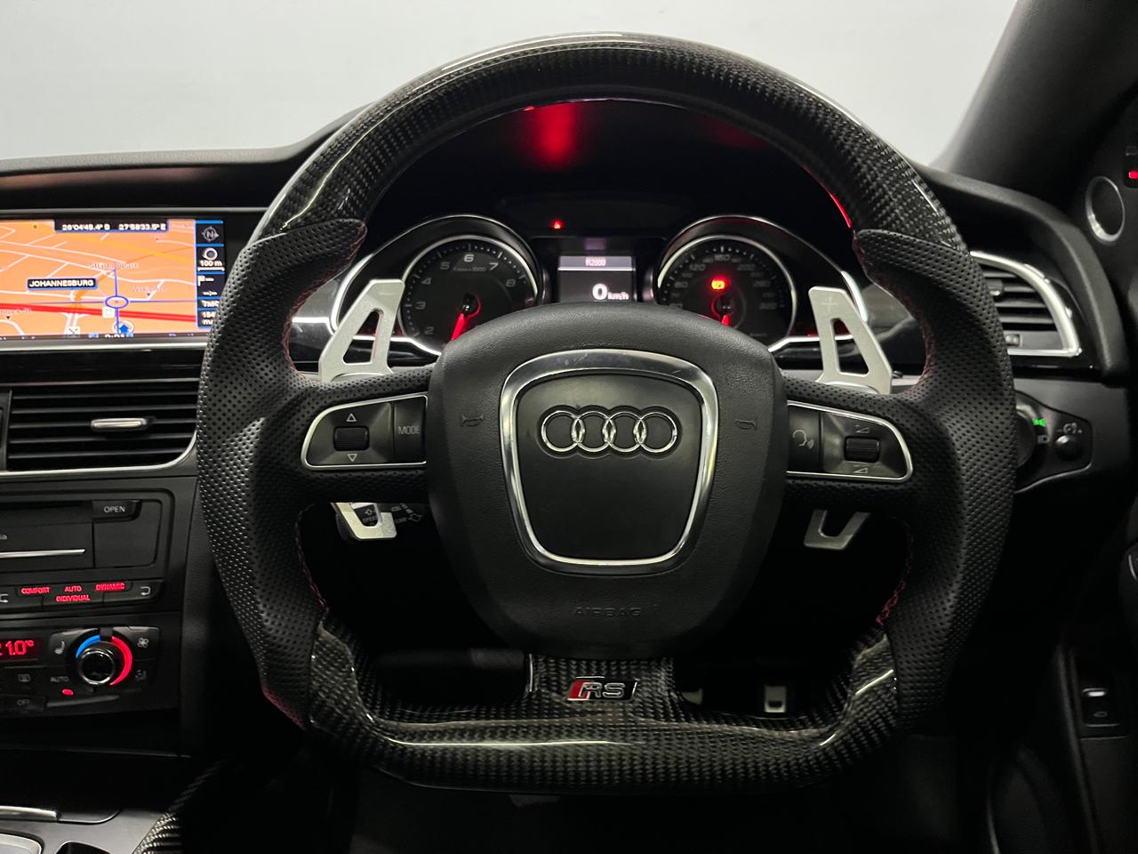 Dual exhaust system Xenon headlights with LED DRLs Audi MMI infotainment system Bluetooth connectivity Dual-zone climate control RS alloy wheels & aggressive styling